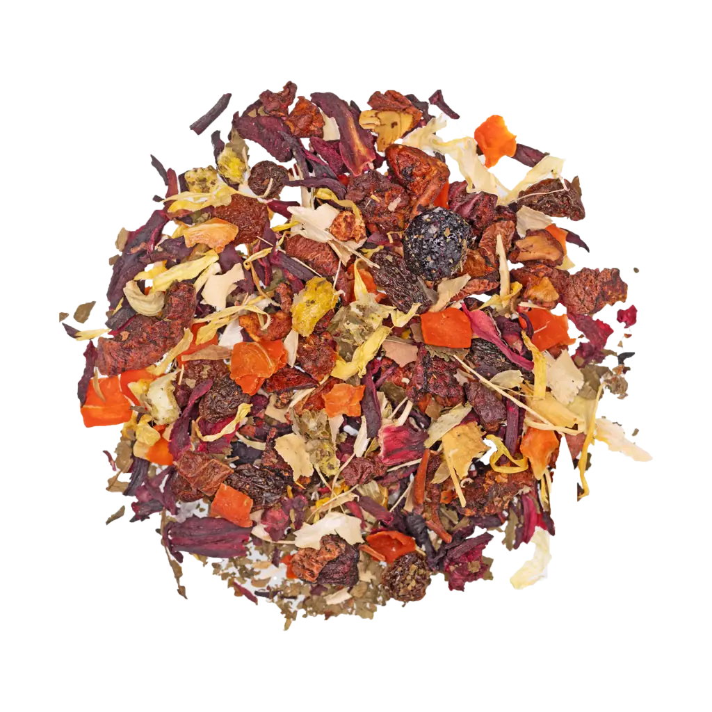 Ein Tee wie ein Spaziergang durch eine leuchtende Sommerlandschaft, in der Beeren funkeln und Zitrusnoten in der Luft liegen. Die tiefrote Tasse wirkt fast magisch, der Geschmack lebendig und spritzig – fruchtig, klar und voller Energie. Ein Tee, der die Sinne weckt und kleine Alltagsmomente in etwas Besonderes verwandelt.