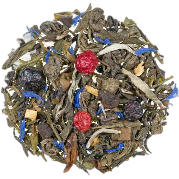 Mischung aus Grün-und Schwarztee, Blüten und Fruchtstücken. Aromatisiert mit Mango-Maracuja Geschmack.
